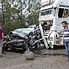 Bilecik'te meydana gelen trafik kazasında tırın altında kalan aracın sürücü feci şekilde can verdi.