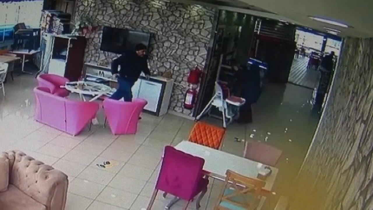 Elazığ'da meydana gelen ve birçok yerde hissedilen 4.9. şiddetindeki deprem bir kafenin güvenlik kamerasına saniye saniye yansıdı.