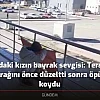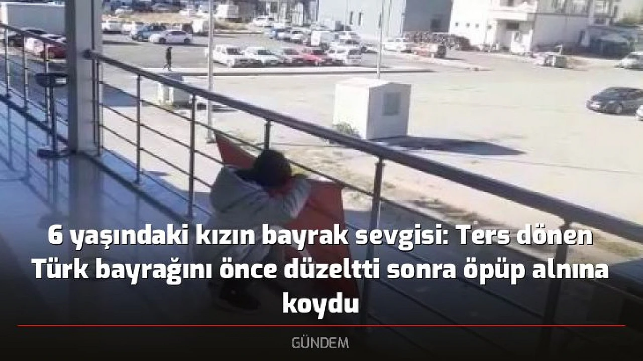 6 yaşındaki kızın bayrak sevgisi: Ters dönen Türk bayrağını önce düzeltti sonra öpüp alnına koydu