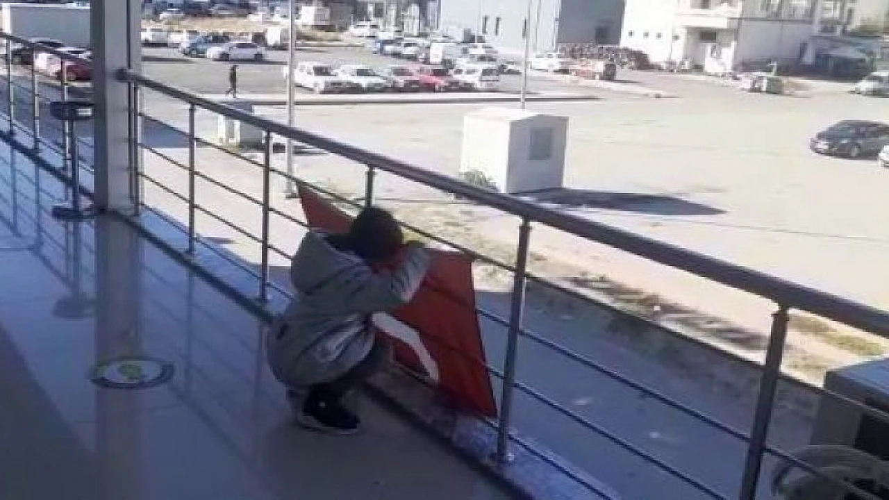 Elazığ'da 6 yaşındaki kız çocuğu, bir iş yerinde bulunan ve rüzgar nedeni ile ters dönen Türk bayrağını düzelttikten sonra öpüp alnına koydu.