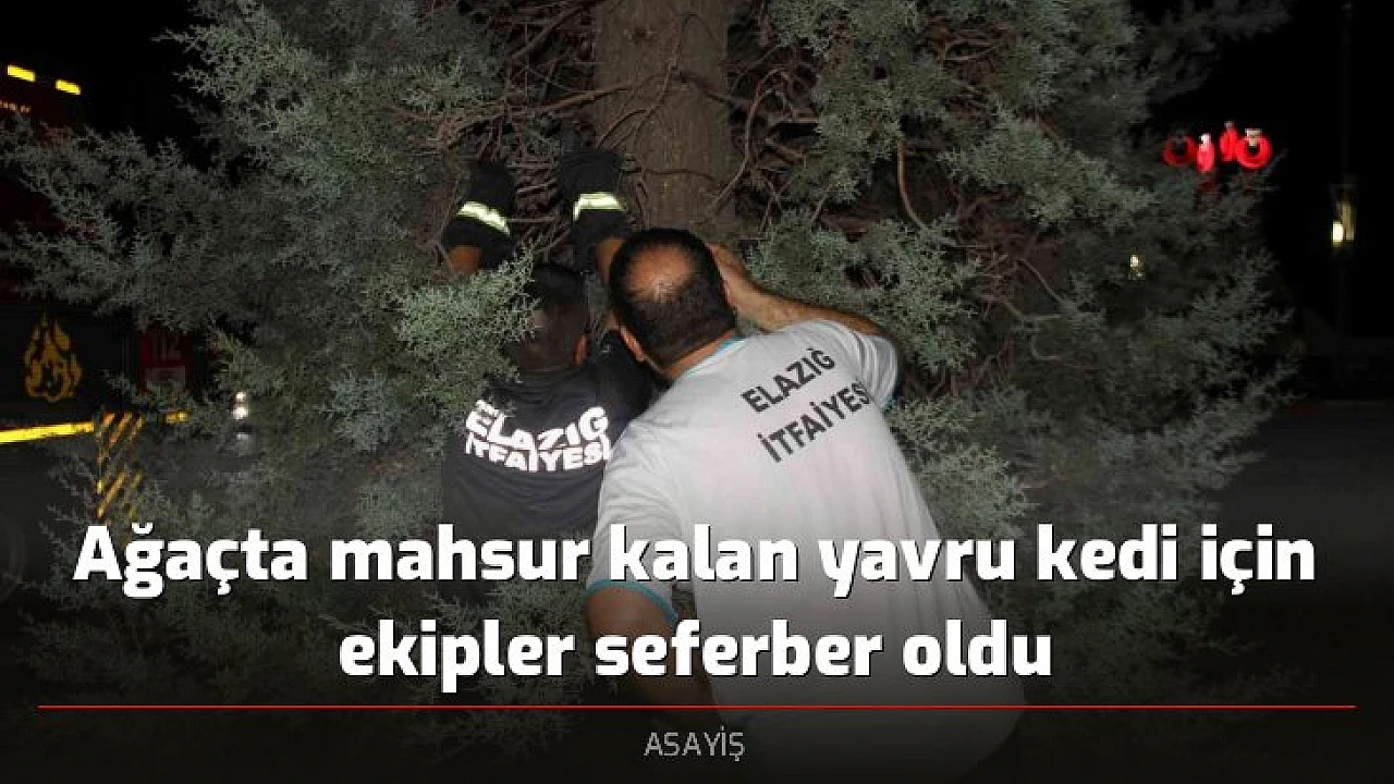 Elazığ'da ağaçta mahsur kalan kedi için ekipler seferber olurken, ekiplerin kurtarmaya çalıştığı kedi, ağaçtan aşağı atlayarak gözden kayboldu.