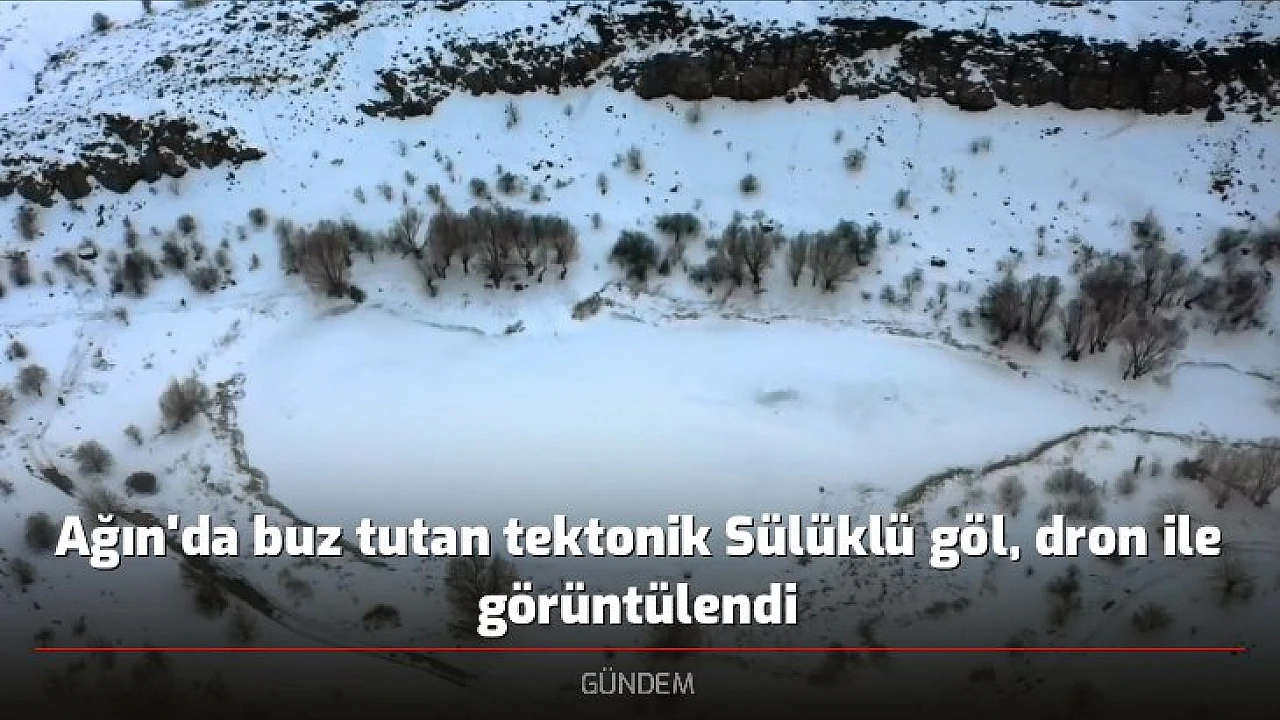Ağın'da buz tutan tektonik Sülüklü göl, dron ile görüntülendi
