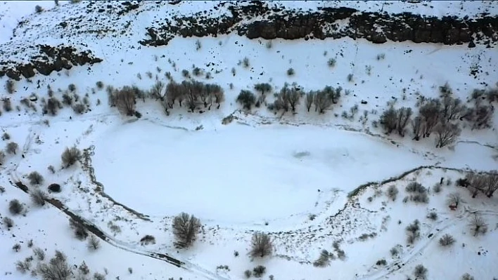 Sülüklü gölün buz tutması kartpostallık bir görüntü oluştururken, bölge dron ile görüntülendi.