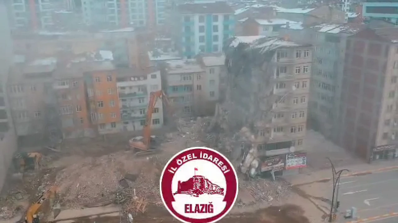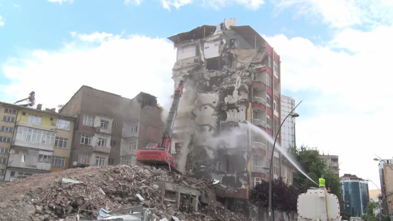 Elazığ'da Ağır hasar alan binalar kontrollü bir şekilde yıkılmaya başlandı.