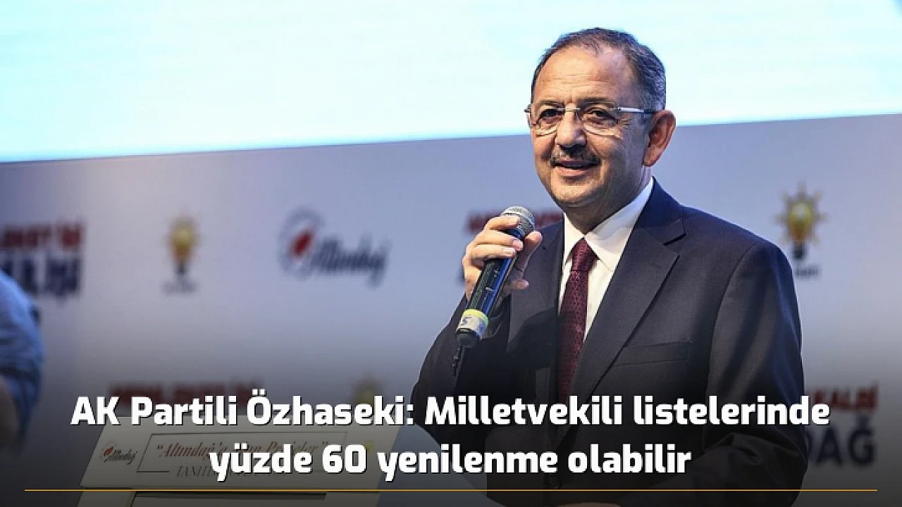 AK Parti Genel Başkan Yardımcısı Mehmet Özhaseki, milletvekili listelerinde en az yüzde 60 yenilenme bekliyor. 'AK Parti'de yenilenme arzusu her zaman en üst seviyededir. Genelde yüzde 60 oranında bir yenilenme olur' diyen Özhaseki, '3 dönem kuralı işletilmeli. Ben de üç dönemliklerden biriyim. Benim şahsi hedefim bir kere daha aday olmamak' dedi.