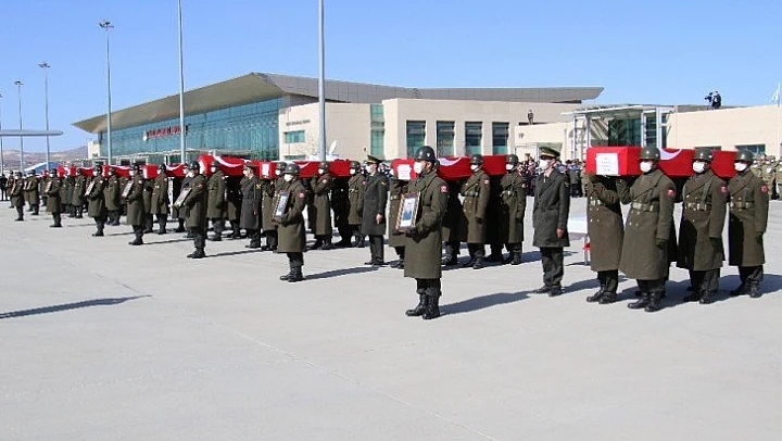 Bitlis'in Tatvan ilçesinde helikopterin kaza kırıma uğraması sonucu şehit düşen aralarında 8. Kolordu Komutanı Korgeneral Osman Erbaş'ın da bulunduğu 11 askerin naaşı, törenle Elazığ'dan Ankara'ya uğurlandı.