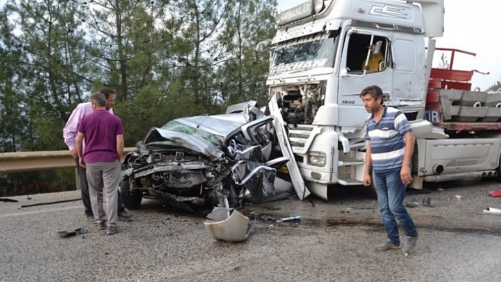 Bilecik'te meydana gelen trafik kazasında tırın altında kalan aracın sürücü feci şekilde can verdi.