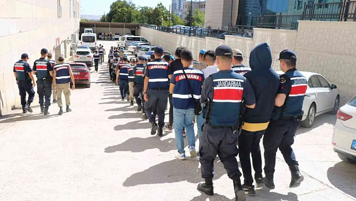 İl Jandarma Komutanlığında işlemleri tamamlanan 26 şüpheli bugün adliyeye sevk edildi.