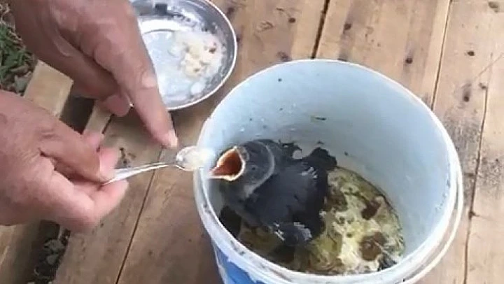 76 yaşındaki Akif Amca, yavru kargayı bebek gibi besliyor
