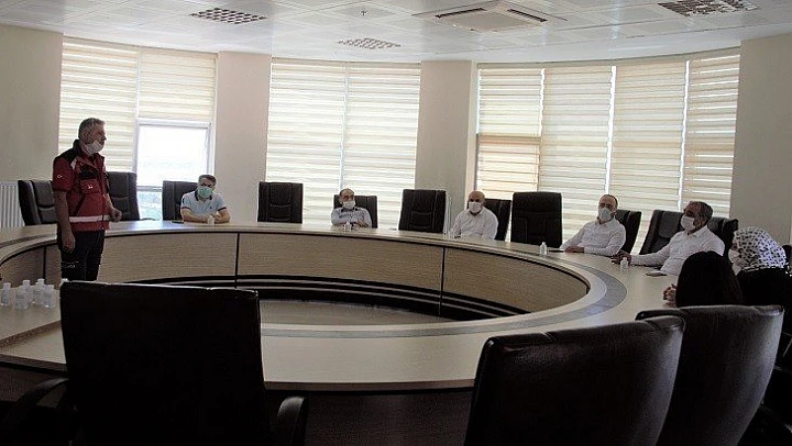 Afet ve UMKE birim sorumlusu Yalçın Öngören'in sunumu eşliğinde gerçekleştirilen toplantıda 24 Ocak'ta ilimizde meydana gelen depremde Afet ve UMKE ekipleri tarafından yürütülen çalışmaların yanı sıra halen devam etmekte olan pandemi süreci ile ilgili alınan önlemlerin genel bir değerlendirmesi yapıldı.