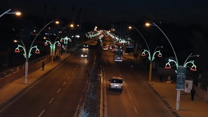 Ağrı Belediyesi tarafından ana caddelerde uygulanan lale figürlü aydınlatma çalışması şehre renk katarak büyük beğeni topladı.