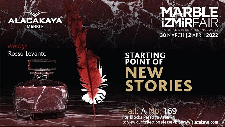 Doğal taş sektöründe dünyanın en önemli buluşmalarından olan MARBLE İZMİR Uluslararası Doğaltaş ve Teknolojileri Fuarı, 30 Mart – 2 Nisan 2022 tarihlerinde kapılarını 26. kez tüm dünyaya açıyor. Sektör devlerinin buluşacağı fuara Türkiye'nin önemli mermer üreticisi Alacakaya Mermer de katılacak.