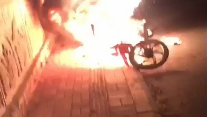Bir süre sonra kendiliğinden sönen motosiklet kullanılamaz hale geldi.
