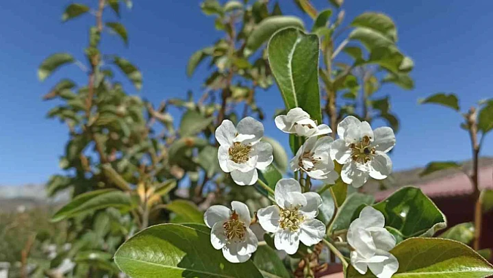 Elazığ'da armut ağacı, üzerinde meyvesi olmasına rağmen sonbahar mevsiminde tekrar çiçek açtı.