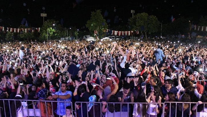 Aynı anda kep atan binlerce öğrenciden coşkulu kutlama