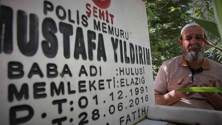 6 yıl önce şehit olan Polis Memuru Mustafa Yıldırım'ın babası Hulusi Yıldırım, eşiyle birlikte Babalar Günü'nde oğlunun kabrini ziyaret etti. Oğlunun Allah yolunda devleti, milleti ve bayrağı için canını verdiğini dile getiren baba Yıldırım, Babalar Günü'nde 'O bana gelmedi ben ona geldim dedi.