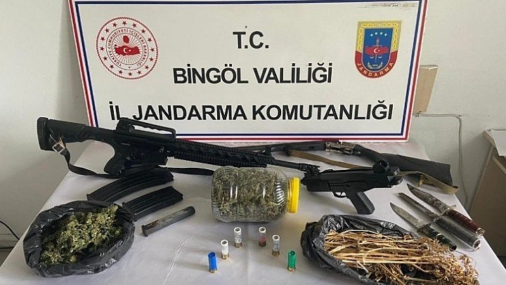 Bingöl'de jandarma ekiplerinin belirlediği bir adrese operasyon yapıldı, ruhsatsız çeşitli silahlar ve esrar ele geçirildi, 2 şüpheli gözaltına alındı.