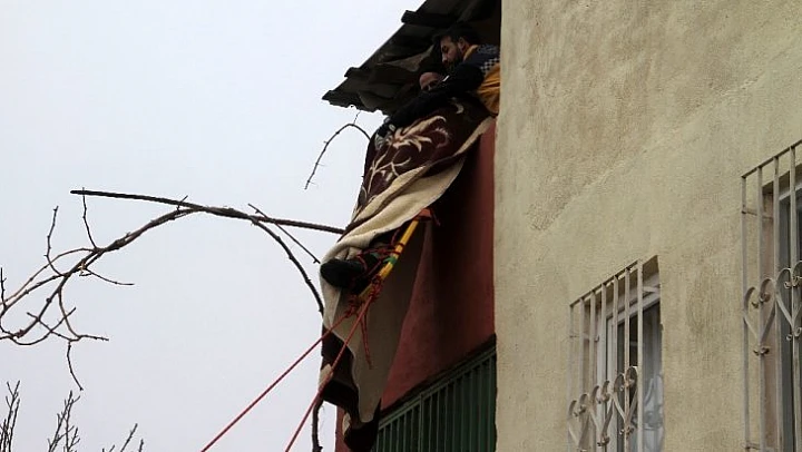 Elazığ'da çatı bacası temizlerken dengesini kaybedip balkona düşüp mahsur kalan şahıs AFAD ekiplerinin yaklaşık 1 saatlik operasyonu ile kurtarıldı.