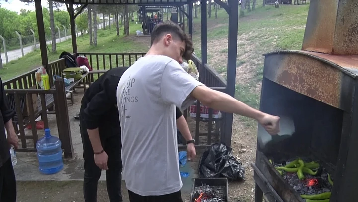 Bir tarafta çocukların oyunu, bir tarafta kadınların sohbeti… Erkekler ise mangal başında yerini aldı.