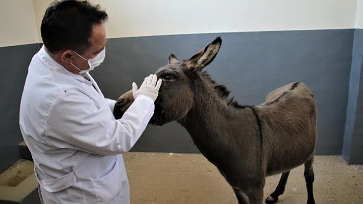 Eşeğin bir gözünde katarak olduğunu belirten FÜ Hayvan Hastanesi Başhekimi Prof. Dr. Mehmet Cengiz Han, "Çok az görüyor. Diğer gözü tramvaya maruz kalmış. Bir boğuşma, köpek saldırısı veya düşmeye bağlı olabilir. Göz görme yeteneğini kaybetmiş. Üzerinden en az 6 ay geçmiş. Çünkü göz iyice küçülmüş, göz boşluğu içerisine dibe kadar inmiş. Artık görme yetisi yok. Hayatını bundan sonra böyle devam edecek. Bakıma muhtaç. Yardım olmadan beslenmesi ve hareketi zor. Yön bulamaz. Mutlaka yardım elinin uzanması gerekir. Birinin sahiplenip hareketine yardım etmesi gerekir. Yoksa bu gözlerle hem beslenmesi hem hakaret etmesi çok zor. Katarak ameliyatı olabilir. İstanbul'da bir hayvan göz hastanesi var. Orada belki düzeltilebilir" dedi.