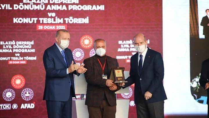 Elazığ'a gelen Cumhurbaşkanı Recep Tayyip Erdoğan, Elazığ depreminin 1. yıl dönümü nedeniyle düzenlenen anma ve deprem konutları anahtar teslim törenine katılmak üzere Elazığ'a geldi. Uçakla Elazığ Havalimanına gelen Cumhurbaşkanı Erdoğan, Çevre ve Şehircilik Bakanı Murat Kurum'la helikoptere geçerek, kentte yapılan çalışmaları yaklaşık yarım saat havadan inceledi. Erdoğan ardından merkeze bağlı Yazıkonak beldesinde deprem konutları teslim törenine katıldı. Törende Cumhurbaşkanı Erdoğan konuşma yaptı. Erdoğan'ın konuşmasının ardından Diyanet İşleri Başkanı Ali Erbaş dua etti. Ardından tekrar Cumhurbaşkanı Erdoğan sahneye çıkarak, telekonferans yöntemiyle ilk olarak Karşıyaka Mahallesi'nde evine yerleşen 3 çocuklu depremzede bir aile ile milletvekili Zülfü Demirbağ aracılığıyla bağlantı kurarak anne baba ve çocuklarıyla görüşme yaptı. Daha sonra Erdoğan, Aksaray Mahallesi'nde evine yerleşen aile ile Milletvekili Zülfü Tolga Ağar aracılığıyla 3 çocuklu bir aile ile görüşerek memnun olduklarını sordu ve 'Siz memnunsanız, bizde memnunuz bu dua bize yeter' ifadelerini kullandı. Son olarak Değirmenönü köyünde evine yerleşen aile ile bağlantı kuran Erdoğan, aile fertleri ile tek tek görüşüp memnuniyetlerini sordu. Tören son olarak Erdoğan'ın bakanlarla birlikte 12 aileye anahtar teslimi ve kurdele kesiminin gerçekleştirmesiyle sona erdi.