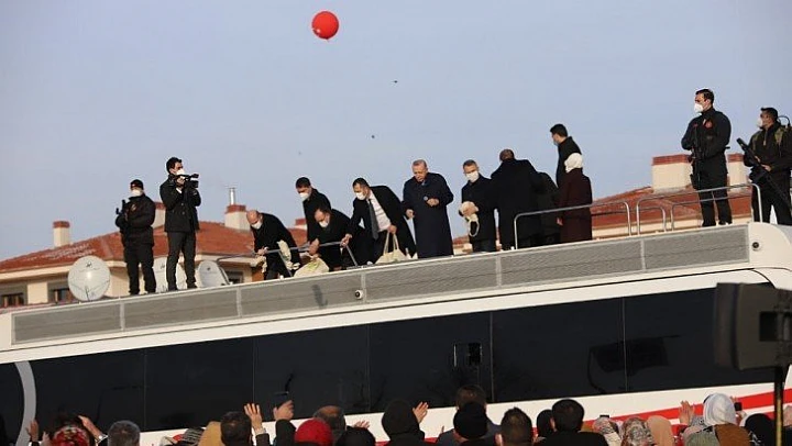 Elazığ'a gelen Cumhurbaşkanı Recep Tayyip Erdoğan, Elazığ depreminin 1. yıl dönümü nedeniyle düzenlenen anma ve deprem konutları anahtar teslim törenine katılmak üzere Elazığ'a geldi. Uçakla Elazığ Havalimanına gelen Cumhurbaşkanı Erdoğan, Çevre ve Şehircilik Bakanı Murat Kurum'la helikoptere geçerek, kentte yapılan çalışmaları yaklaşık yarım saat havadan inceledi. Erdoğan ardından merkeze bağlı Yazıkonak beldesinde deprem konutları teslim töreni alanına geçti. Cumhurbaşkanı Erdoğan, burada bekleyen vatandaşlara otobüs üzerinden açıklamada bulundu.