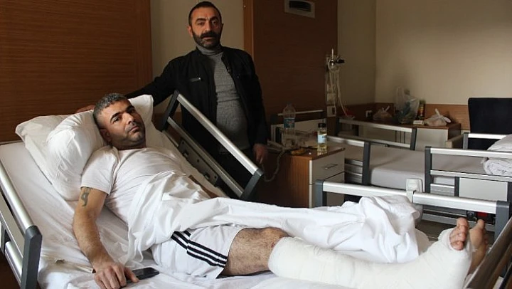 Elazığ'da 6.8 büyüklüğündeki depremde paniğe kapılarak 2'inci kattan aşağı atlayan Erhan Kaplan bacağını ve kalça kemiğini kırdı.
