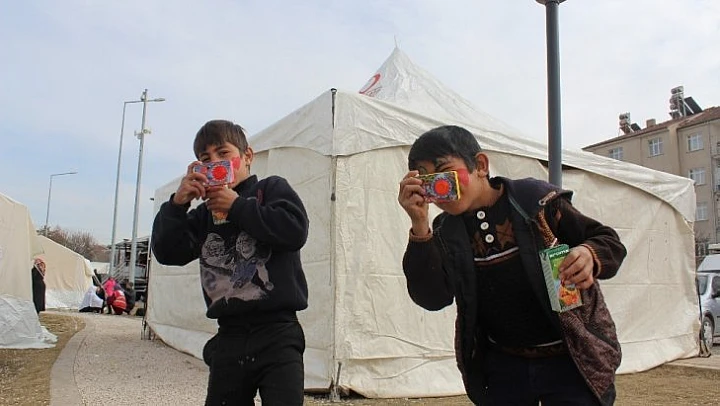 Depremin vurduğu Elazığ'da yaralar sarılmaya devam ederken, kurulan çadır kentlerde de yaşam sürüyor. Çadırda kalan ailelerin çocukları da oyunlar oynayarak günlerini geçirmeye çalışıyor.