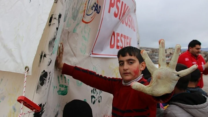 Elazığ'da meydana gelen 6.8 büyüklüğündeki depremin ardından mahallelerde kurulan ‘Psikososyal Destek ve Çocuk Çadırları' depremzede çocuk ve ailelerin gönüllerine dokunuyor.