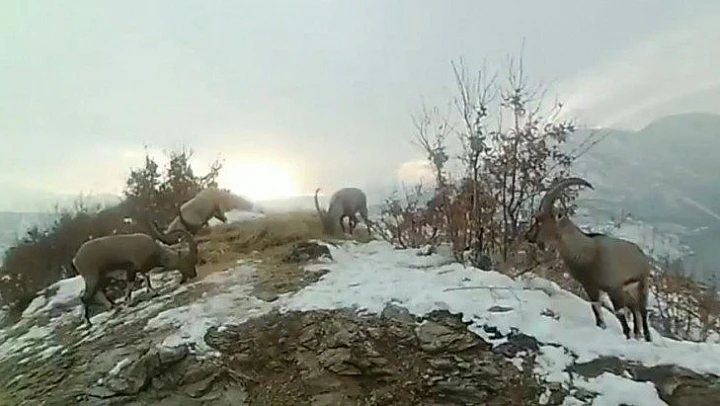 Doğaya bırakılan yemleri yiyen yaban keçileri ve kuşlar görüntülendi