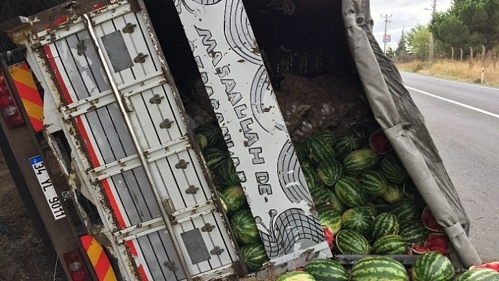 Edirne'de karpuz yüklü kamyon devrildi: 1 yaralı