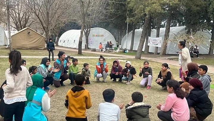 Öte yandan, psikososyal destek ekipleri de çocukların mutlu olması ve depremde yaşadıkları travmayı atmaları için çalışmalarını sürdürüyor.