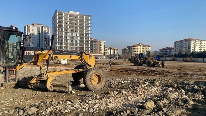 Yeşilyurt ilçesinde AFAD öncülüğünde kurulacak olan konteyner kent çalışmalarında Elazığ Belediyesi ekipleri de destek sunuyor.