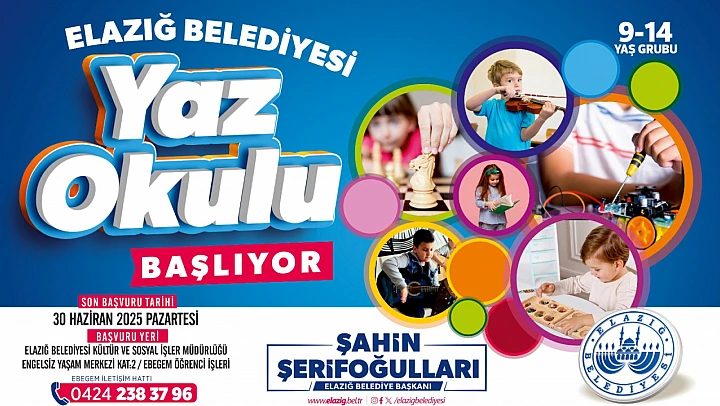 Elazığ Belediyesi Basın-Yayın ve Halkla İlişkiler Müdürlüğü'nden yapılan açıklamada, bütün çocuklar Yaz Okulu'na davet edildi.