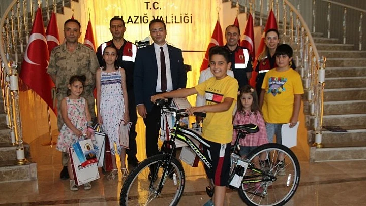 İçişleri Bakanlığı tarafından uygulamaya konulan 'Bu Yolda Hep Birlikteyiz' projesinin devamı olan 'Dikkat Sizden Notlar Bizden' uygulaması Elazığ'da da gerçekleştirildi. İl Jandarma Komutanlığı tarafından internet üzerinden düzenlenen yarışmaya katılarak babaları için 'Sürücü Seyahat Karnesi' dolduran ve en çok beğeni alan öğrenciler belirlendi. En çok beğeni alan 1 öğrenciye bisiklet diğer 5 öğrenciye de çeşitli hediyeler valilikte düzenlenen programla verildi. Programa Vali Yardımcısı Uhut Emre Koyuncu, İl Jandarma Komutan Yardımcısı Yarbay Mehmet Karaman ile öğrenciler ve velileri katıldı.