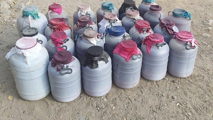 Elazığ'da kaçak içki ile mücadele kapsamında jandarma ekiplerinin 2 adrese düzenlediği operasyonda 1 su deposu ve 54 bidonda 1 ton 50 litre şarap ele geçirildi