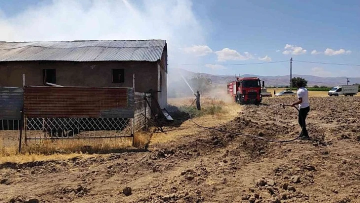 Elazığ'da meydana gelen ahır yangınında 18 büyükbaş hayvan son anda kurtarılırken, 30 ton saman ise yandı.