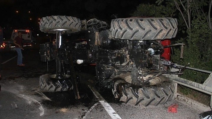 Elazığ'da bariyerlere çarpan traktör devrildi: 2 yaralı