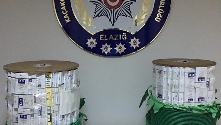 Elazığ'da polisin yaptığı çalışmada elektrik kablosu makarası arasına zulalanmış 100 karton içerisinde bin paket kaçak sigara ele geçirildi.