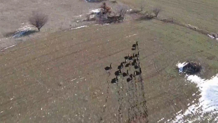 Ağın ilçesine bağlı Öğrendik köyü mevkiinin yüksek rakımlı bölgesinde Drone pilotu Mehmet Yılmaz, domuz sürüsünü görüntüledi. Keban Baraj Gölü'nün üst kısmında karların eridiği bölgede domuzları gören Yılmaz, drone ile uzun süre onları yakından takip etti.Yaklaşık 20 civarında olan sürü uzun süre doğada koştuktan sonra gözden kayboldu.