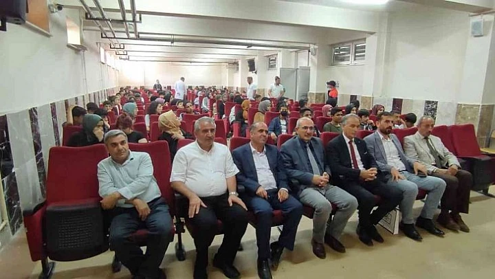 Konferansa rahatsızlığı nedeniyle katılamayan Başkan Hatif Çadırcı ise öğrencilere selamlarını iletilirken misafir eğitimci yazar Hacı Ormanoğlu'na Yazıkonak Belediye Başkan Vekili Faruk Akar tarafından plaket takdim verildi.