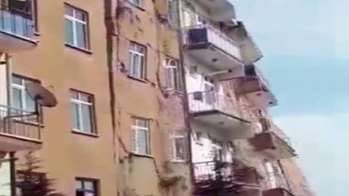 Elazığ'da 6.8'lik depremde hasar gören apartman, kontrollü olarak yıkıldı. Binanın yıkılma anı saniye saniye görüntülendi.