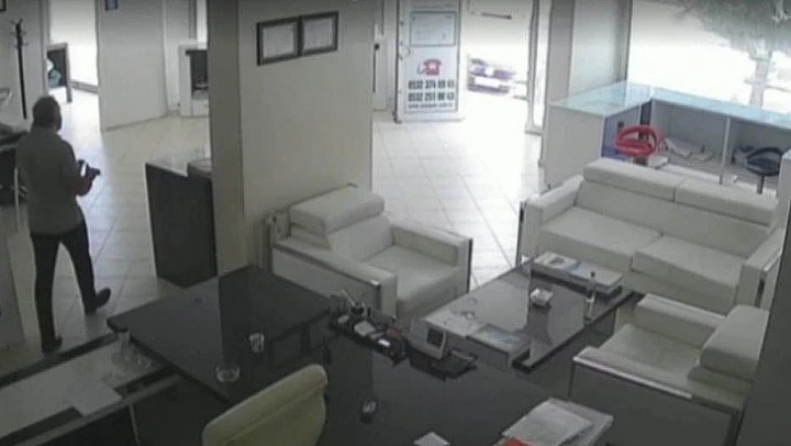 Öte yandan iş yerinin kurşunlama anı güvenlik kameralarına saniye saniye yansıdı.
