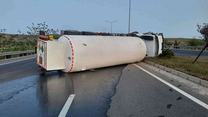 Trafik ekipleri kazanın olduğu yerde trafiği kontrollü bir şekilde sağlarken, yan yatan tanker 5 saatlik çalışmanın ardından kaldırıldı.