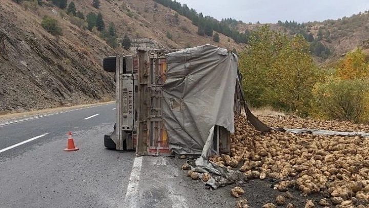 Kaza, Elazığ- Diyarbakır karayolu Maden ilçesi mevkiinde meydana geldi. Edinilen bilgiye göre, S.D. idaresindeki 81 EZ 601 plakalı pancar yüklü tır, sürücüsünün direksiyon hakimiyetini kaybetmesi sonucu devrildi. Kazada, sürücü yara almazken pancarlar yola saçıldı. Haber verilmesi üzerine olay yerine belediye ve polis ekipleri sevk edildi.Belediye ekipleri yol kenarına saçılan pancarları topladı.