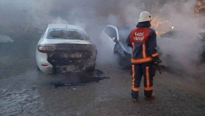 Elazığ'da park halinde yanan 3 araç itfaiye ekipleri tarafından söndürüldü.