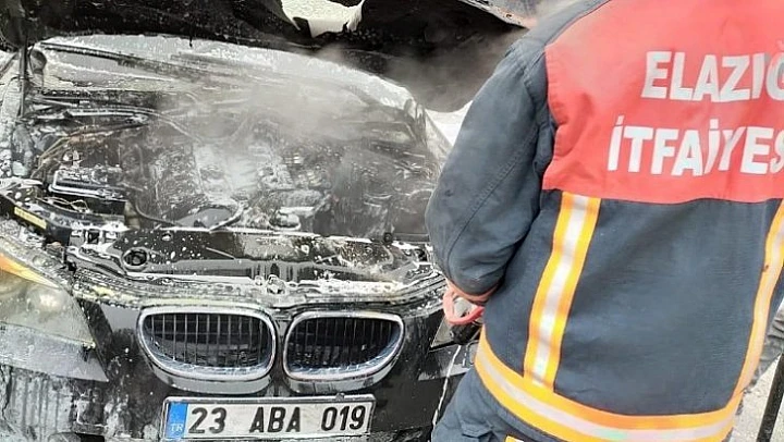 Elazığ'da park halindeki otomobil aniden alev alarak yandı.