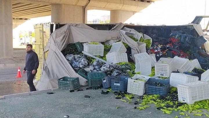 Elazığ'da sebze yüklü kamyonun devrilmesi sonucu meydana gelen kazada 3 kişi yaralandı.