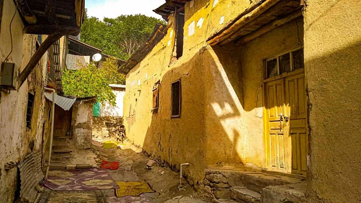 Elazığ'ın Hüseynik Mahallesi'nde sonbaharla birlikte tarihi konaklar eşsiz manzaraya büründü.