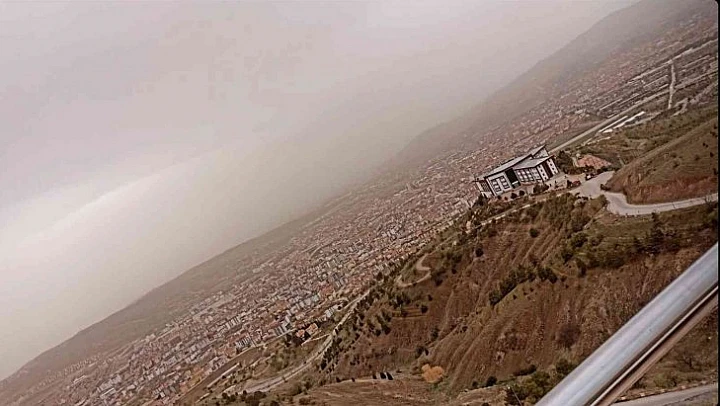 Suriye üzerinden Türkiye'ye gelen toz taşınımı, Güneydoğuda bir çok il de olduğu gibi Elazığ'da da etkisini gösterdi. Tarihi Harput Mahallesi'nden kentteki toz bulutu net bir şekilde gözlenirken, zaman zaman etkili olan şiddetli rüzgar vatandaşlara zor anlar yaşattı.